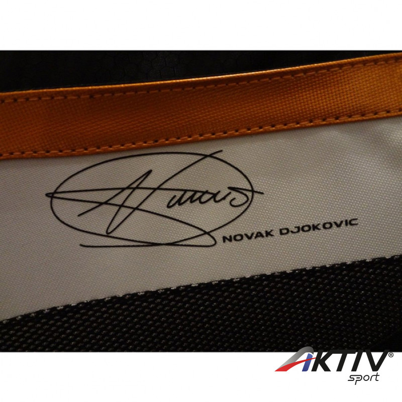 A táska, Djokovic igényei szerint lett kifejlesztve. Kosztaszító, kopásálló, igen tartós anyagból készült, extra rugalmas csatokkal, optimalizált tároló struktúrával.