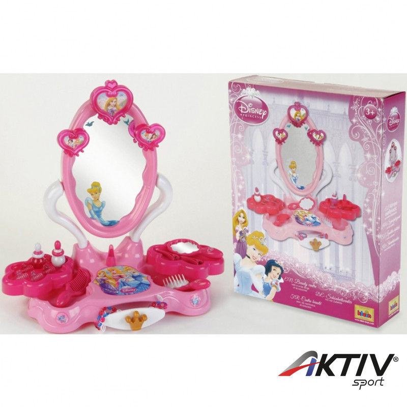 Hercegnõs szépségszalon asztali változatban sok kiegészítõvel: hajkefe, parfümös üvegek, hajcsatok, műanyag ékszer, kézitükör stb.