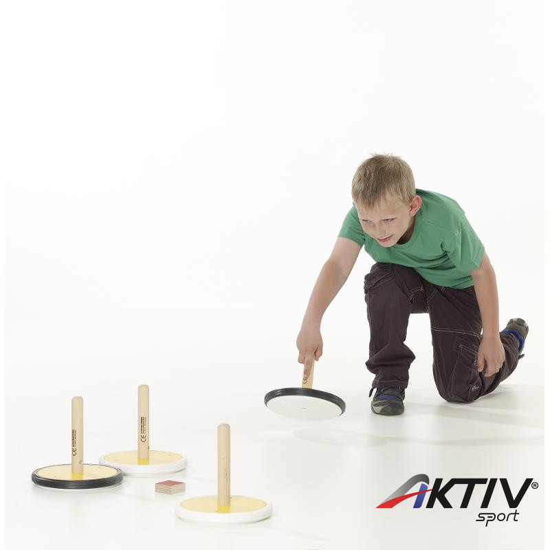 - 4 curling kő (2-2 mindegyik körkörös ütközésvédelemmel fekete-fehér) fából