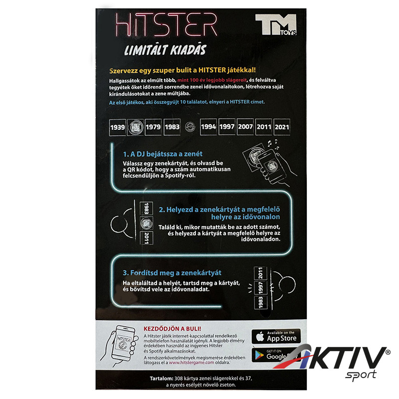 Nyisd ki a csomagot, olvasd be a kártyát az ingyenes Hitster alkalmazással, és a zene automatikusan elindul – a többit hagyd a zenére, és a buli garantáltan sikeres lesz!