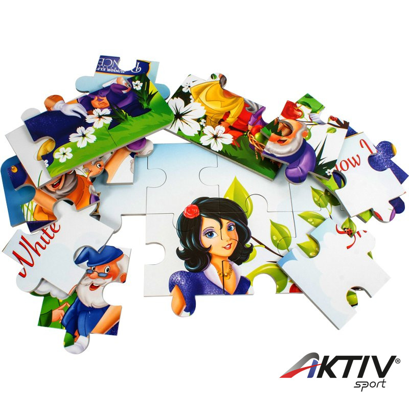 Nagyszerû 24 db-os szivacskarton puzzle Hófehérke és a hét törpe mintával.