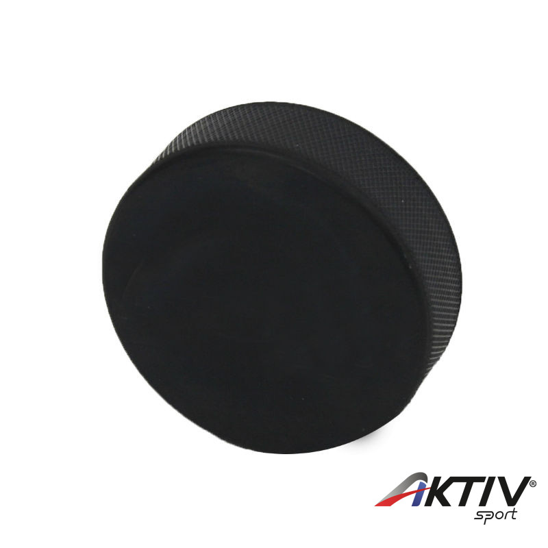 Fekete színű, műanyagból készült könnyített hokikorong, felirat nélkül.