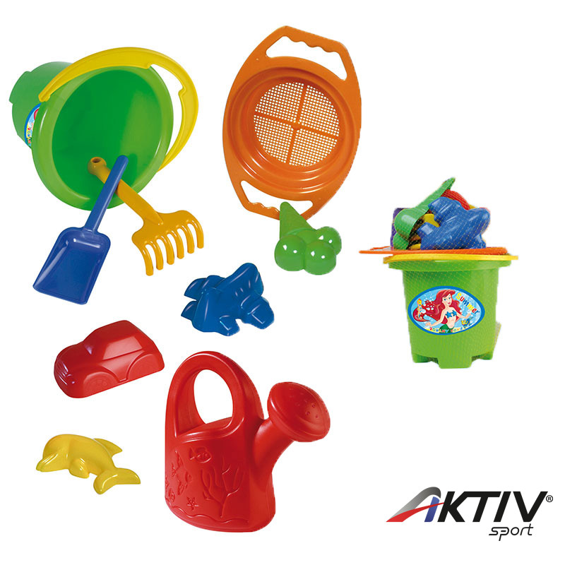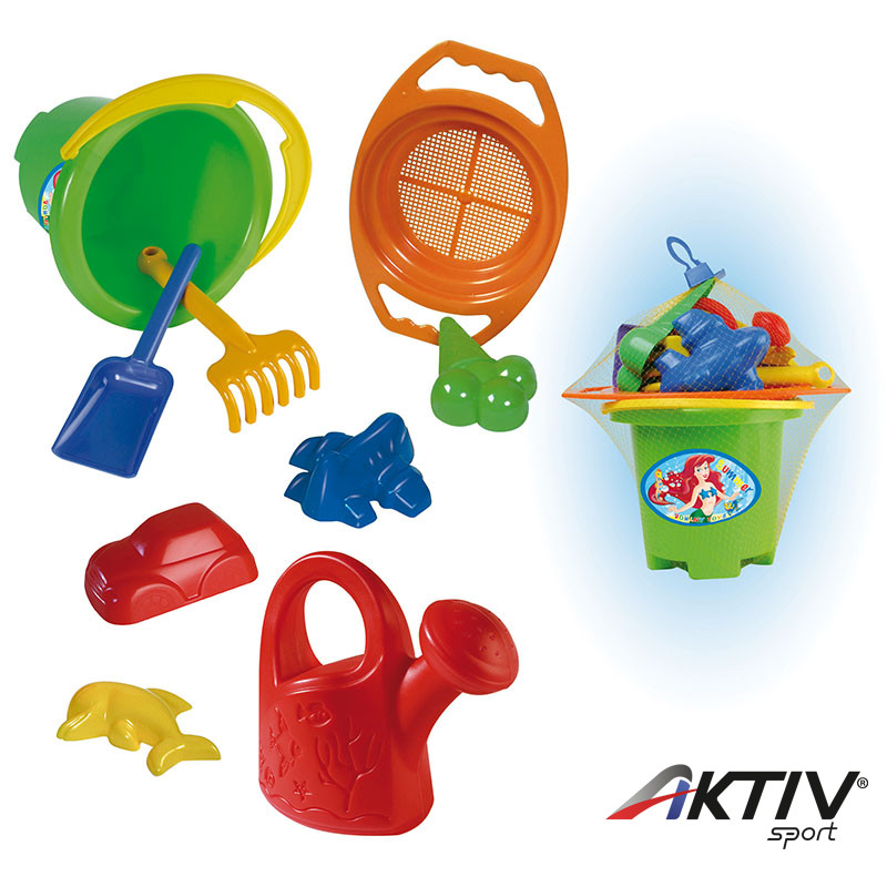 Homokozó játék kisgyermekek számára, hálós csomagolásban.