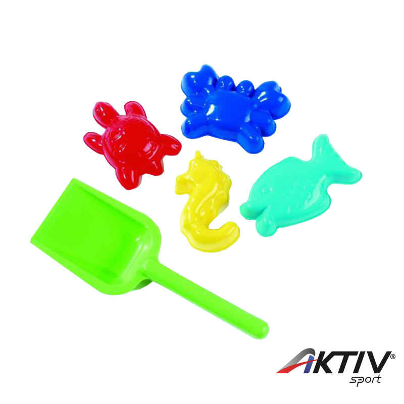 A csomag 4 db homokozó formát és egy lapátot is tartalmaz.