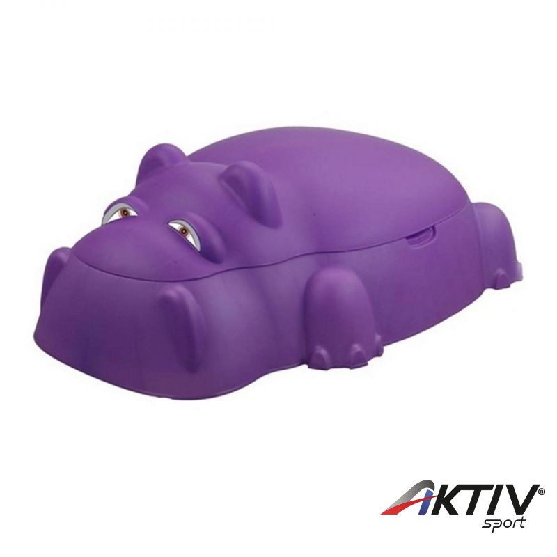 Starplast márkájú műanyagból készült víziló formájú homokozó, amely akár kismedenceként is használható. A homokozóhoz egy fedél is tartozik, amellyel biztonságban tudhatjuk a homokot vagy a vizet a külső szennyeződésektől.