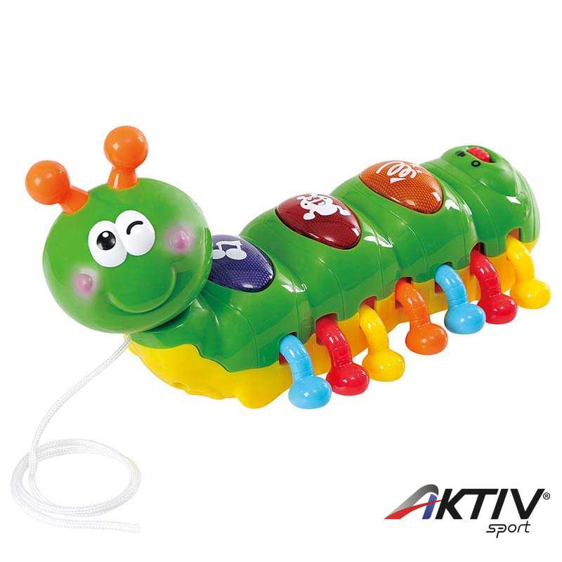 Vidám kishernyó körbeforgatható, kattogó hangot adó fejjel, vidám, mókás dallamokkal és hangeffektusokkal, villogó, színes gombokkal a hátán.