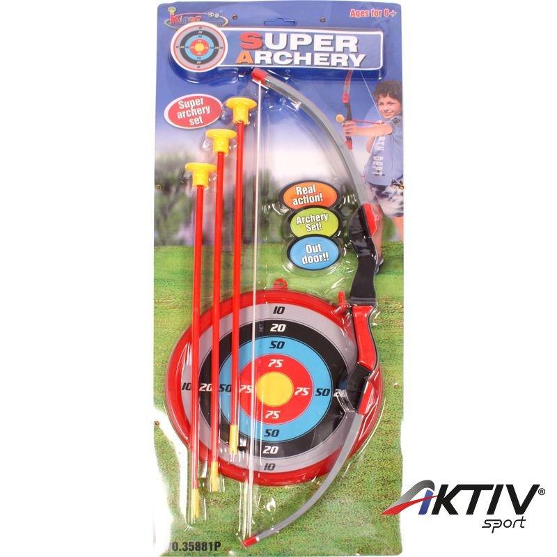 A készlet tartalma: 1 db íj, 3 db nyílvessző, 1 db felakasztható céltábla.