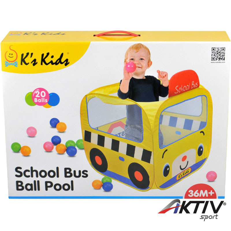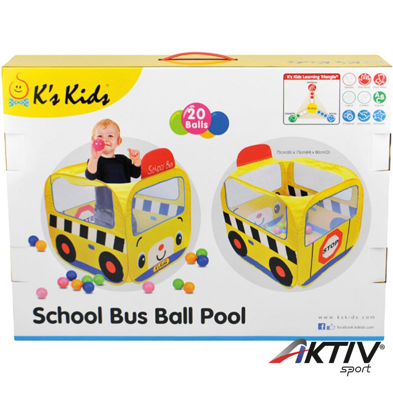K's Kids Iskolabusz játszósátor, színes labdákkal. Szórakoztató Iskolabusz játszósátor, színes labdákkal amely minden baba számára kellemes időtöltés. A játék remekül fejleszti a babák finommotorikus, nagymotoros képességét, nyelvi intelligenciáját, érzelmi és kommunikációs készségét, valamint önértékelését. A K's Kids Iskolabusz játszósátor mérete 73 x 73 x 80 cm. 3 éves kortól ajánljuk.