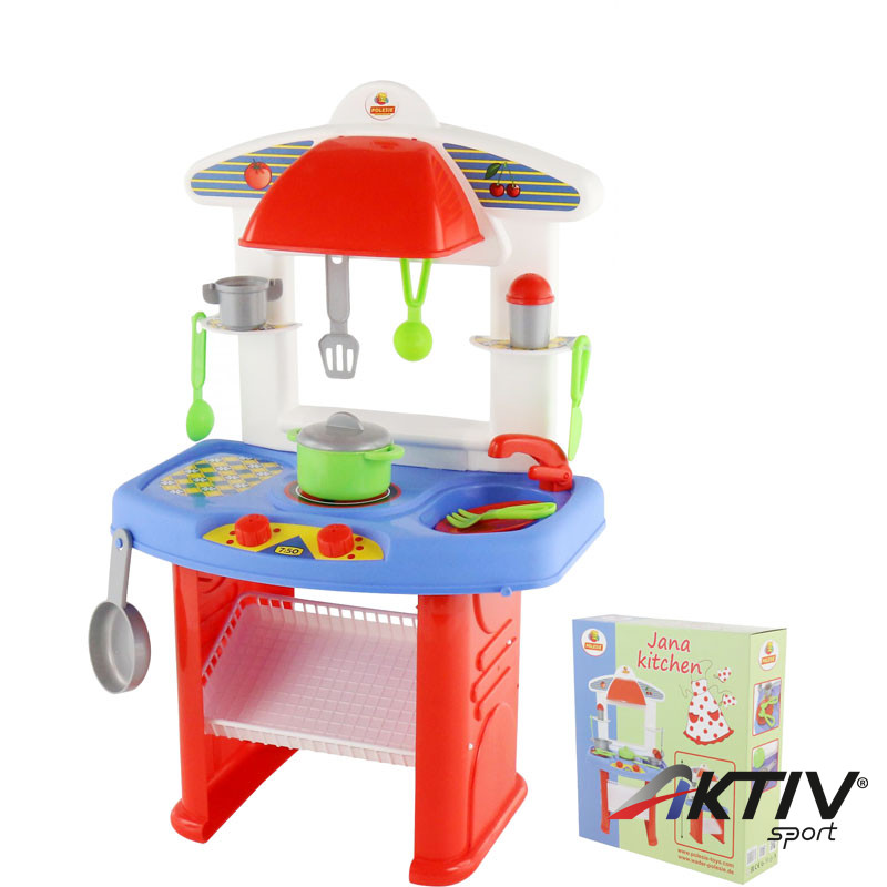 Polesie márkájú Jana játékkonyha. Süsd, főzd meg kedvenc ételeid játékkonyhádban, úgy mint a nagyok! A szett mindent tartalmaz, amire egy leendő szakácsnak szüksége lehet. Tervezd meg menüdet, főzd meg a fazékban és a serpenyőben, fogyaszd el tányéroddal és evőeszközeiddel, majd mosogasd el azokat!