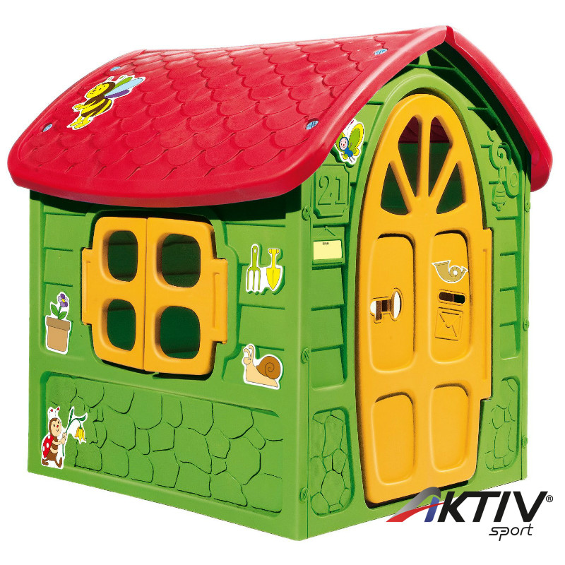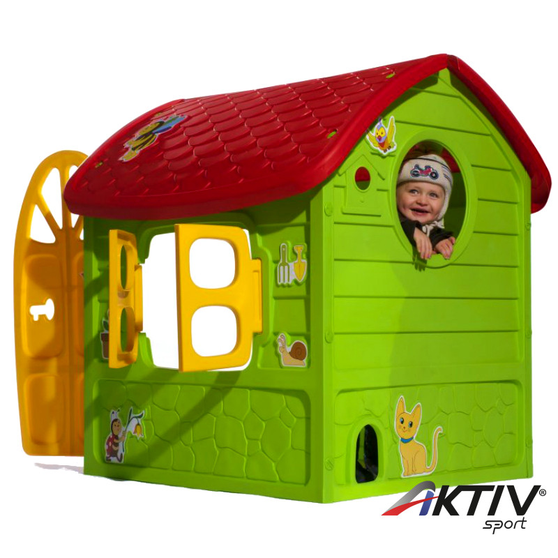 A házikó erős, az időjárás viszontagságainak ellenálló műanyagból készült, a ház ajtaja és ablakai nyithatók.