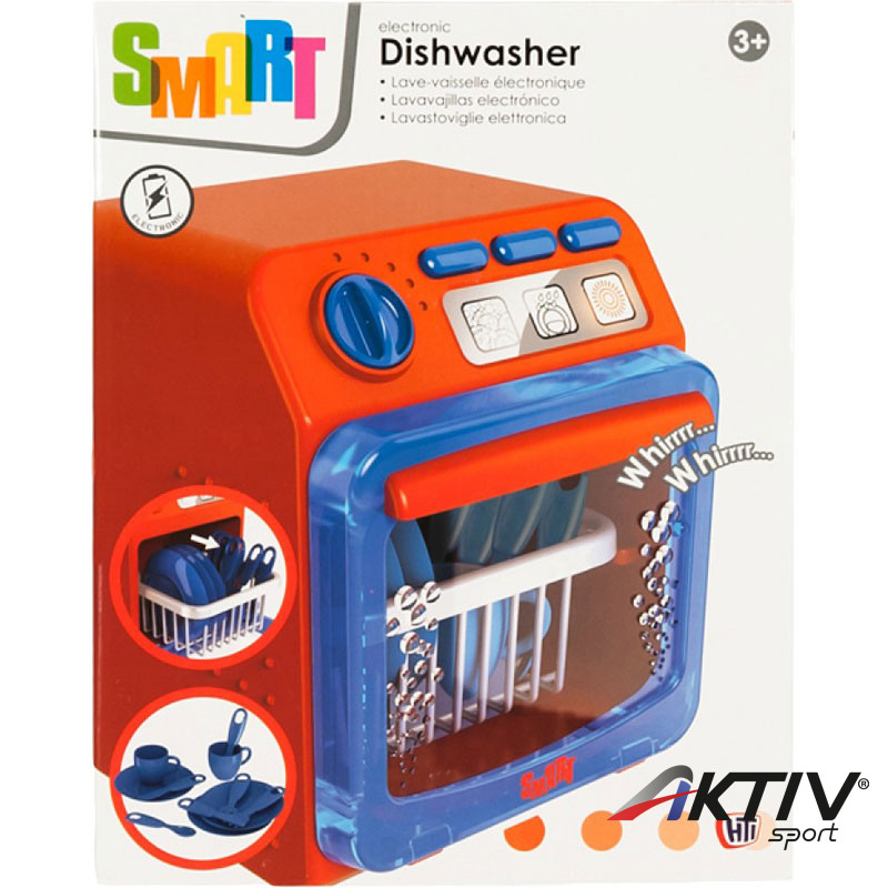 A modern háztartás elengedhetetlen kelléke a mosogatógép. A Smart 2016-os játék mosogatógépe hang- és fényeffektekkel szórakoztat, így a játék még valóságosabbá válik! A mosogatógép ajtaja lenyitható, az edénytároló kihúzható, különböző mosási, szárítási funkciója van. Tartozékai: edénytartó rács, 3 db tányér, 2 db csésze, 2 db kanál, 2 db villa és 2 db kés.
