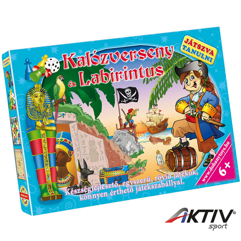 Rövid játékmenetes, mégis vidám és izgalmas készségfejlesztő társasjátékok egy csomagban. A Kalózversenyben a kalózoknak összesen 12 db kincset kell összeszedniük. Ahogy fogynak a kincsek, a feszültség egyre nő, miközben megismerhetik az alapszíneket is. A kincseket ügyes kalóztámadásokkal lehet gyarapítani, és az nyer, aki a legtöbbet szedi össze. A Labirintus pedig az ókori Egyiptomba kalauzolja a játékosokat. A fáraó sírjában meg kell találni a kincseket, de ez nem olyan egyszerű, hiszen a szarkofág kulcsai veszélyes csapdák között vannak elrejtve. A lakat jelre lépve a játékos kimarad a dobásból, míg a bogár visszaküldi a játékost a kiindulási helyre.