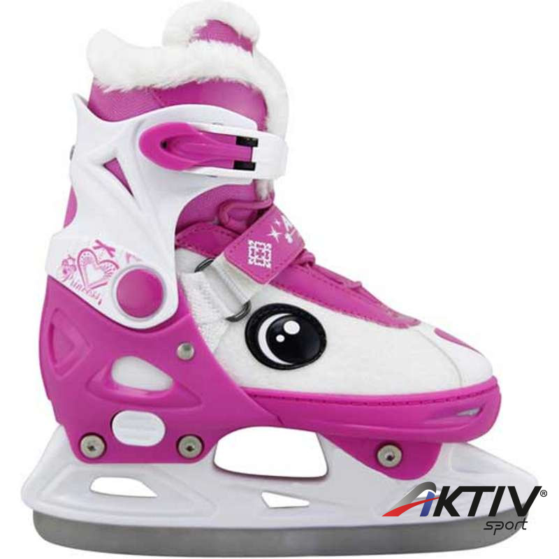 A korcsolya megfelelően rögzíthető a gyerekek lábára, masszív, fix csavarokkal felszerelt és a fűző mellett pánt is segíti a szoros tartást. A felhelyezéssel nem kell sokat bajlódni, gyorsan beköthető, a biztonsági csat egyszerűen bekapcsolható, ami a gyerekeknek sem okoz gondot. Népszerű rózsaszín-fehér színe az aprónép kedvence. Különleges, egyedi mintázata segít a szülőknek messziről is észrevenni gyermeküket. A korcsolya rózsaszín szíves mintázattal, Princess (hercegnő) felirattal díszített.