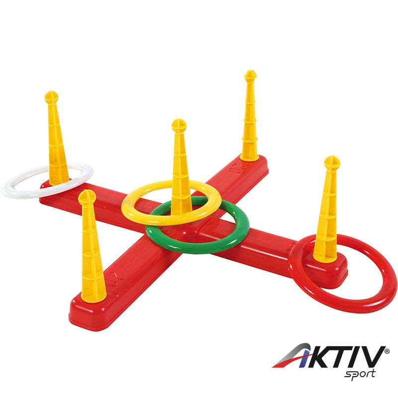 A karikadobáló ügyességi játék egy műanyagból készült kereszt formájú játék, sárga bábokkal. A bábokra előre megbeszélt távolságból kell a műanyag karikákat dobni, és aki a legtöbbször talál célba, az nyeri a játékot. Szem- és kézkoordinációt fejlesztő játék. A karikadobáló könnyen összeállítható és szétszedhető.