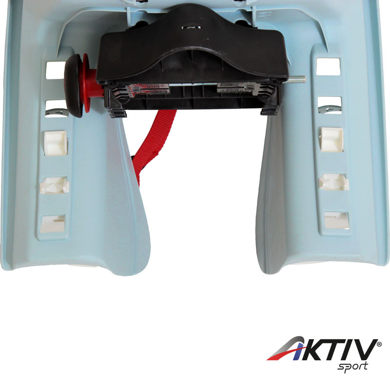 Gyermekünk lábát egy puha műanyagból készült több méretben állítható lefogó pánttal tudjuk rögzíteni a gyereküléshez.