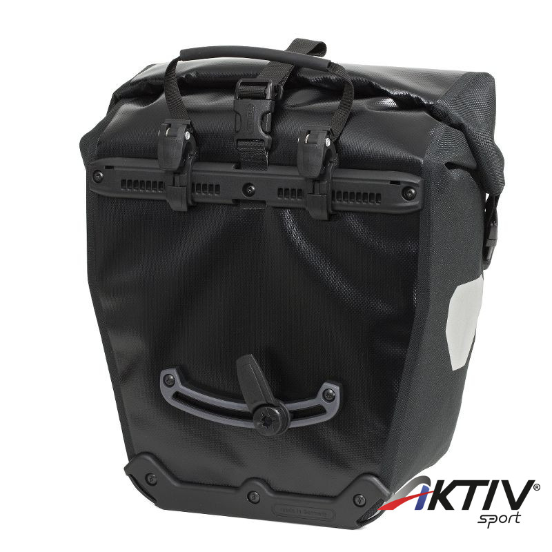 A Black'n White Line az új grafikával és a modern divatos logójával élesen különbözik az Ortlieb kollekcióktól megszokott színvilágtól. Mindazonáltal, legfontosabb vonása az új PVC-mentes anyag, melyet a termékek készítéséhez használtak, akár fekete, akár fehér színûek, és a már ismert klasszikus külsõ. Hátsó biciklis táska betekerhetõ záródással, új QL2.1-es rendszerrel legfeljebb 16mm-ig, új PU-val borított nejlon anyagú, belsõ zsebbel, nagy fényvisszaverõvel, vállpánttal. Választható kiegészítõk: külsõ zseb S méretben, QL2.1 rögzítõ kampó 20mm-ig.