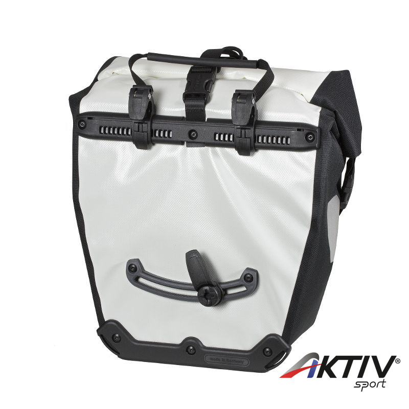 A Black'n White Line az új grafikával és a modern divatos logójával élesen különbözik az Ortlieb kollekcióktól megszokott színvilágtól. Mindazonáltal, legfontosabb vonása az új PVC-mentes anyag, melyet a termékek készítéséhez használtak, akár fekete, akár fehér színûek, és a már ismert klasszikus külsõ. Hátsó biciklis táska betekerhetõ záródással, új QL2.1-es rendszerrel legfeljebb 16mm-ig, új PU-val borított nejlon anyagú, belsõ zsebbel, nagy fényvisszaverõvel, vállpánttal. Választható kiegészítõk: külsõ zseb S méretben, QL2.1 rögzítõ kampó 20mm-ig.