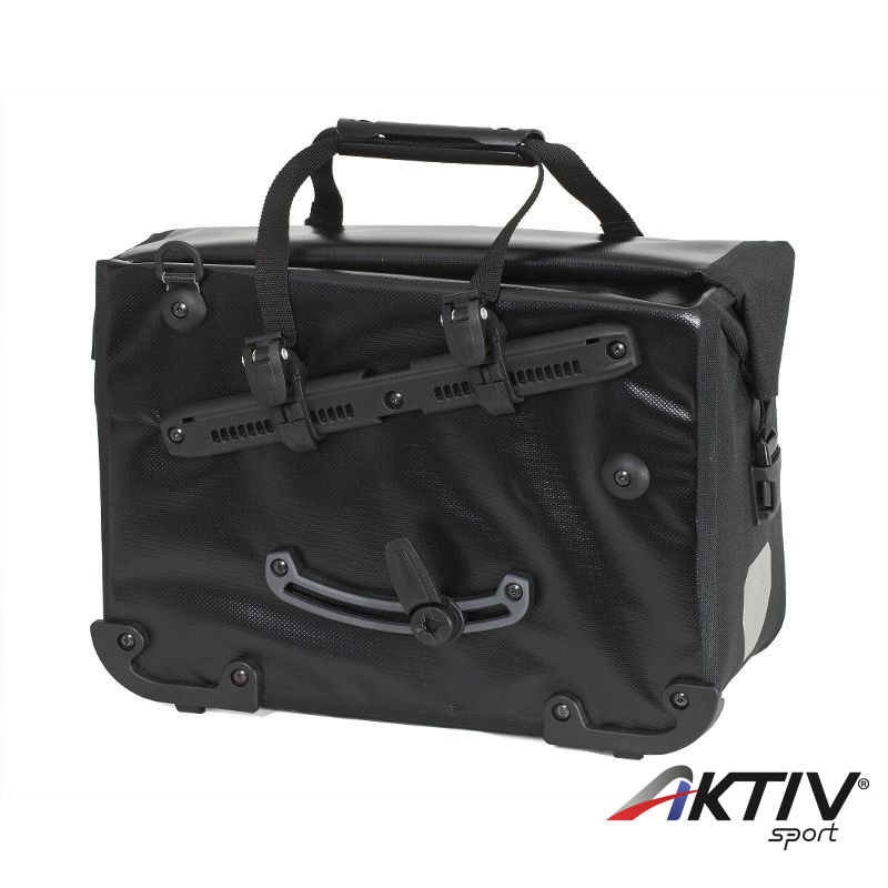 A Black'n White Line az új grafikával és a modern divatos logójával élesen különbözik az Ortlieb kollekcióktól megszokott színvilágtól. Aktatáska feltekerhetõ záródással, új QL2.1 rendszer a legfeljebb 16 mm átmérõjû kormányokhoz, rögzíthetõ a csomagtartó jobb vagy bal oldalára a két irányú QL2.1 sín miatt. Új PU-bevonatú anyagból készült, belsõ rendezõfelülettel, vállpánttal, kopásgátló elemmel, fényvisszaverõkkel. Választható kiegészítõk: lopásgátló készülék, 10, 13.3 és 15.4-os notebook tartó, QL2.1 rögzítõ kampók legfeljebb 20 mm-ig.