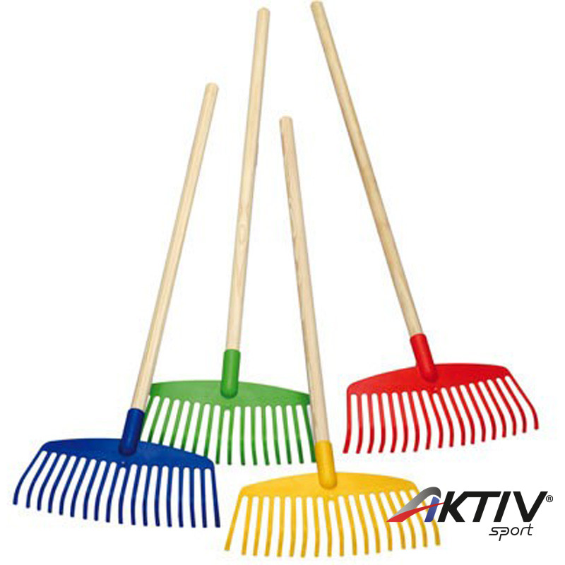 Strapabíró játék a kerti gereblye. A szerszám műanyag fejjel és fogantyúval, csiszolt fa nyéllel. A gyerekek játékosan segíthetnek a kerti munkálatokban. Négyféle színben.