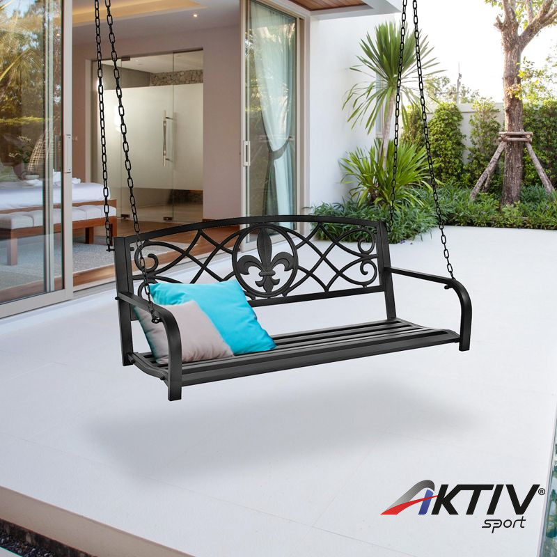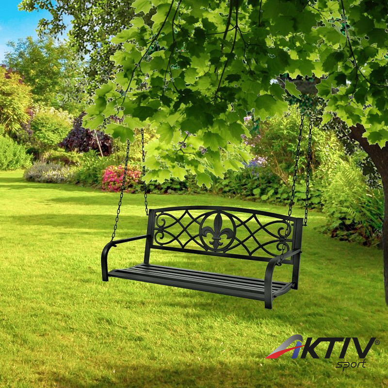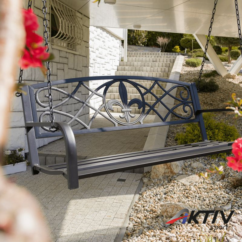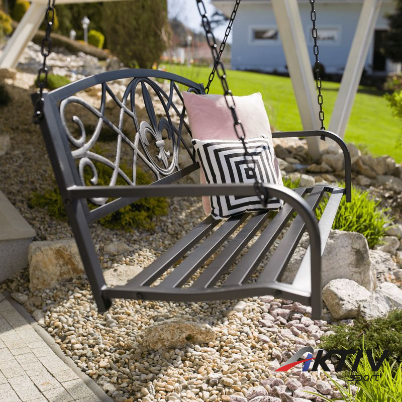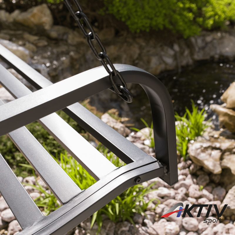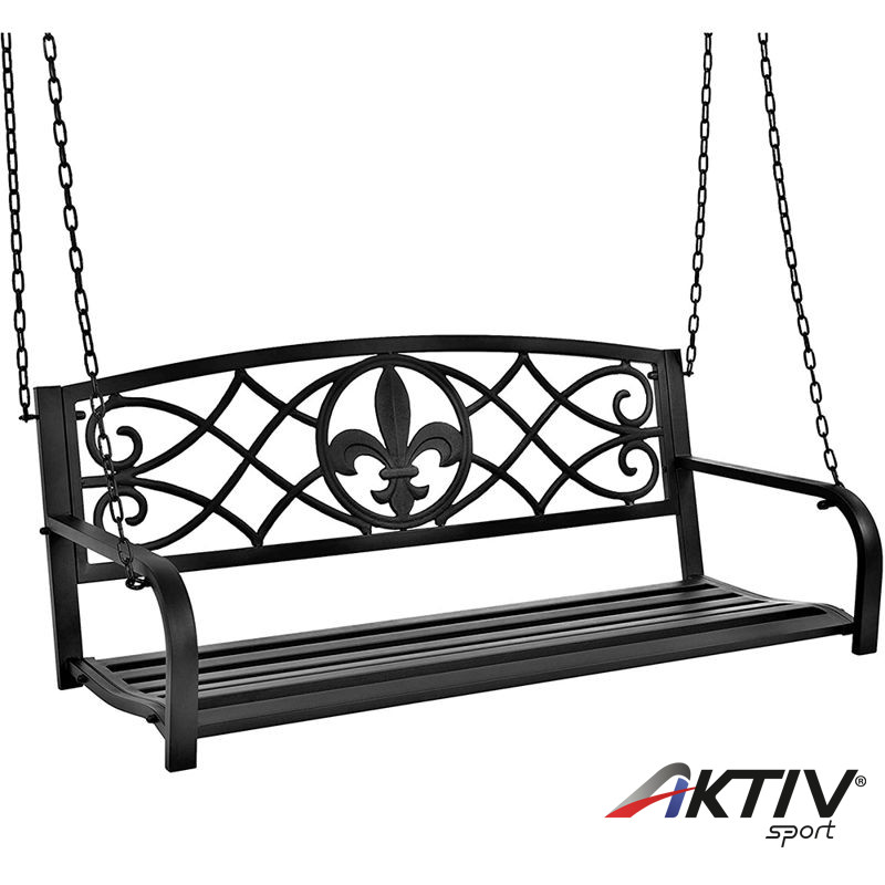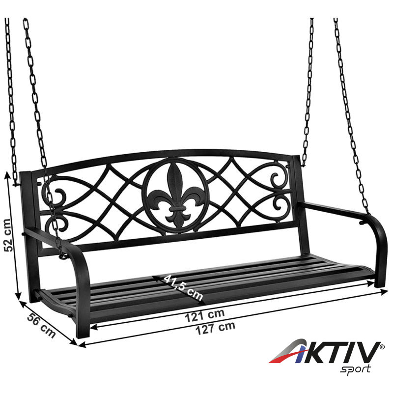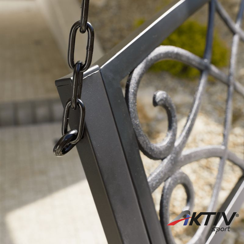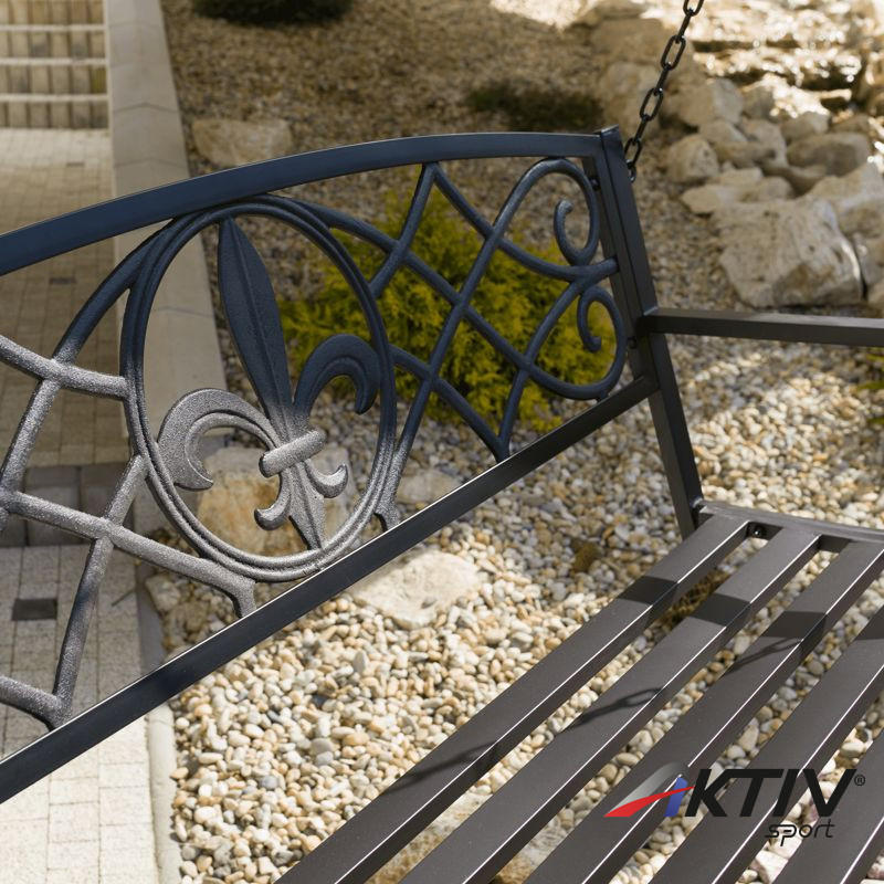 Fekete acélból készül, a háttámlán díszek találhatók, amelyeknek köszönhetően a hinta romantikus hatást kelt. A csomag láncot tartalmaz, amely az akasztáshoz kell, s amelyet ezután a kartámaszokra kell csatolni.