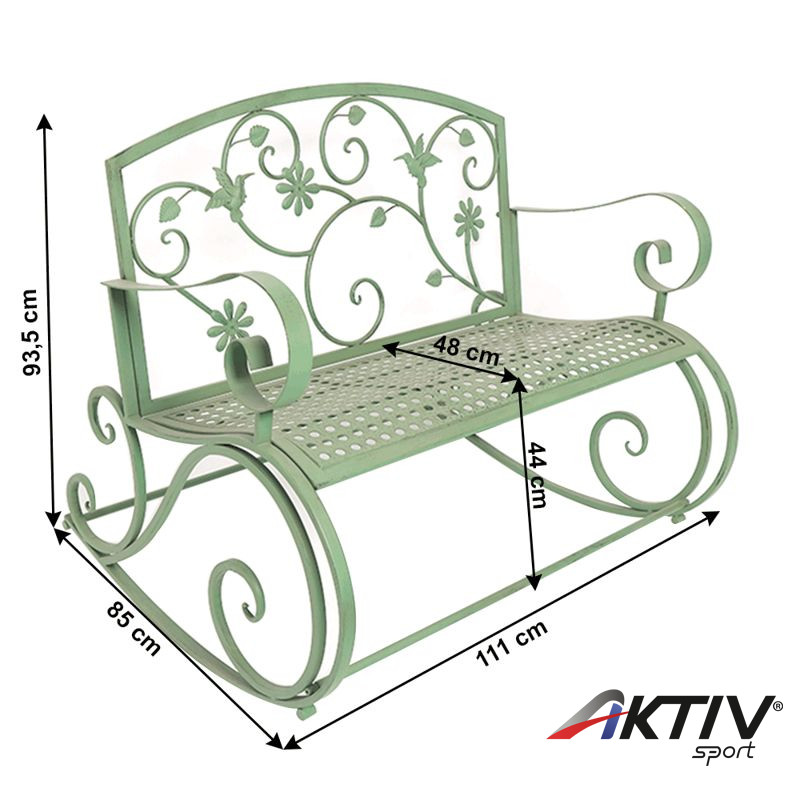 A WILIO hintapad egy divatos neomint színű pad, amely fémből készült. Ezt kiegészíti a kellemes esztétikus és dekoratív megjelenés, amely mindenki figyelmét magára vonja. Dekoratív háttámlát és praktikus kartámaszt is tartalmaz. Ellenállóság jellemzi, ezért kétségtelenül alkalmas kinti használatra is. A széles ülőrész garantálja a kellemes ülést és ringatást. Élvezze a romantikus légkört otthon a kertben, a verandán vagy a teraszon a WILIO hintapadunk segítségével.