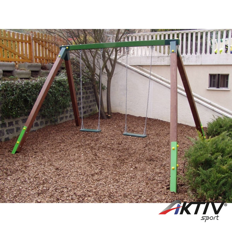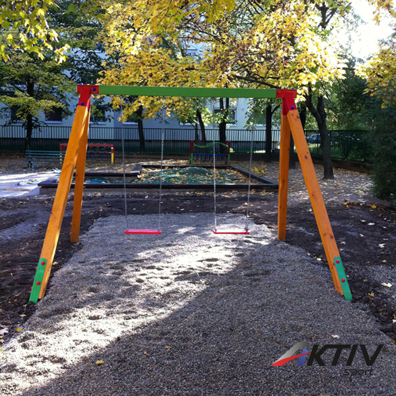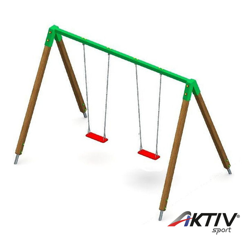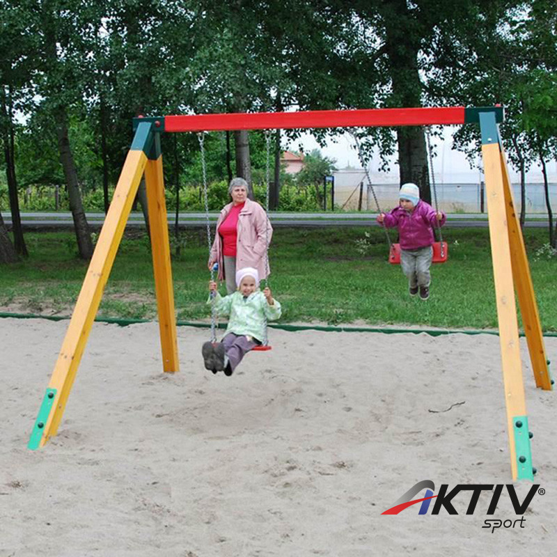 A legtöbb játszótér elengedhetetlen része a hinta. Ezt a masszív kétállású hintát 2 db gumiborítású laphintával kínáljuk köztéri játszóterekre, óvodákba, iskolákba.
