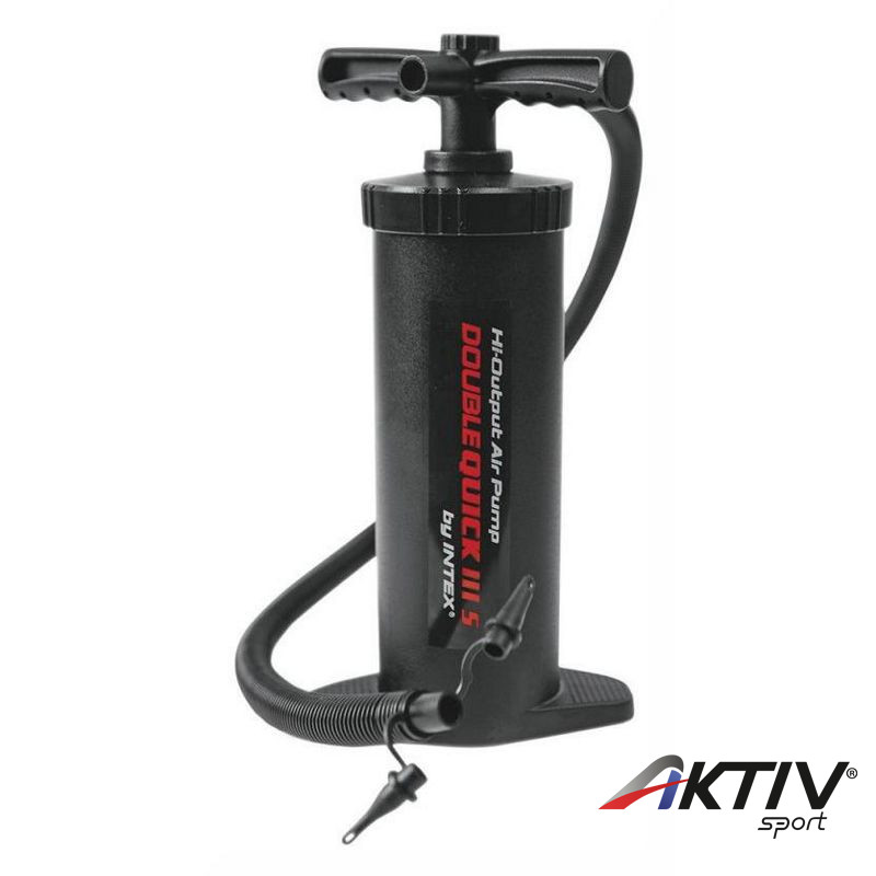 A Double Quick III S kézi pumpa egy nagy tartályos, fémből készült masszív pumpa, amivel bármilyen vízben használatos játékot fel tudsz fújni. A kézi pumpa hajlékony csővel készült, a cserélhető szeleptűkkel bármilyen játékot könnyen felfújhatsz.