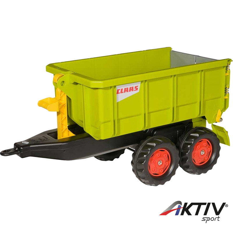 Kiváló minőségű, Rolly Claas konténer utánfutó. Duplatengelyes, billenthető, a konténer rész leemelhető és levehető, hátoldala nyitható. Az utánfutó mérete: 98x45x51 cm, súlya 8,4. 3 éves kortól ajánljuk.