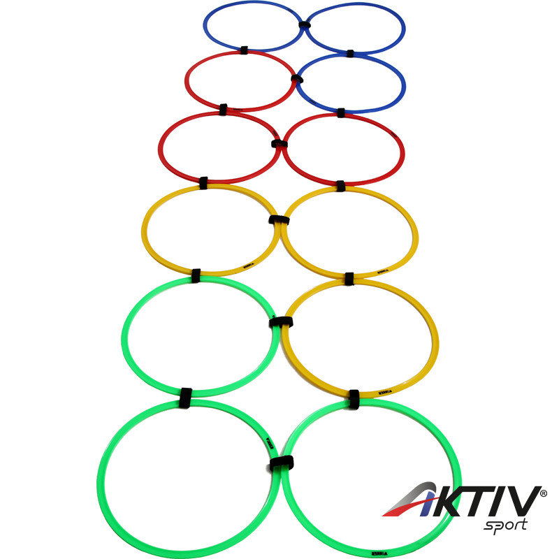 Sokoldalúan használható edzést segítő eszköz. A koordinációs karika javítja a mozgás és koncentráló képességet, miközben hatékonyan fejleszti az erőnlétet. Praktikus hordtáskában. 40 cm cm átmérőjű színes karikák, melyek sokféleképpen összerakhatunk. A képen látható színekben.