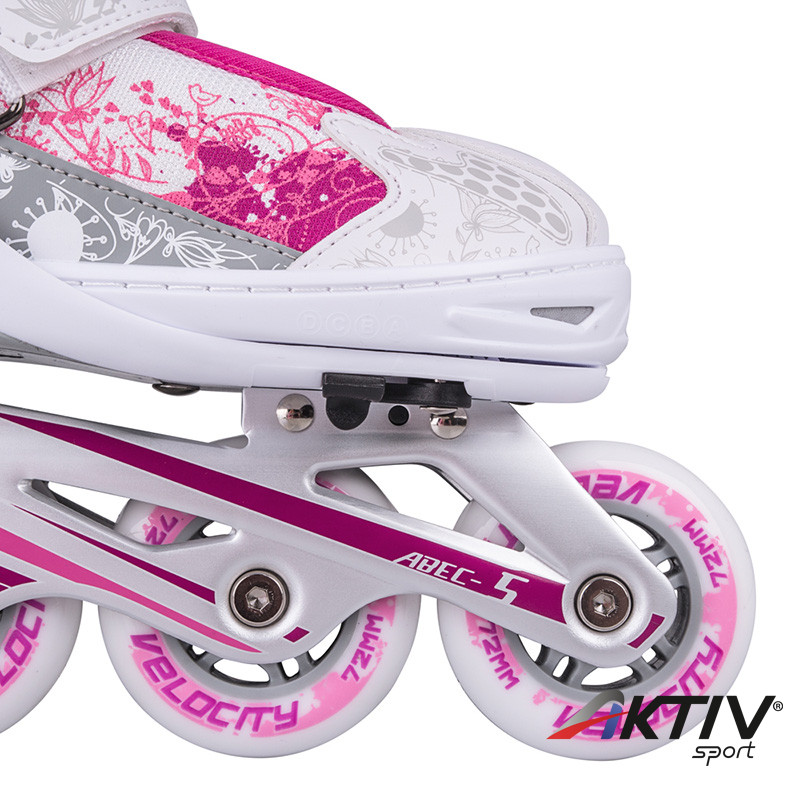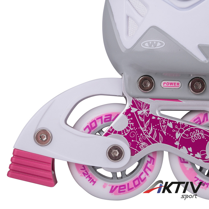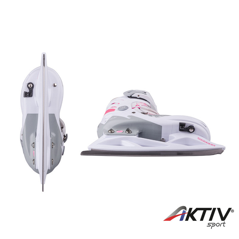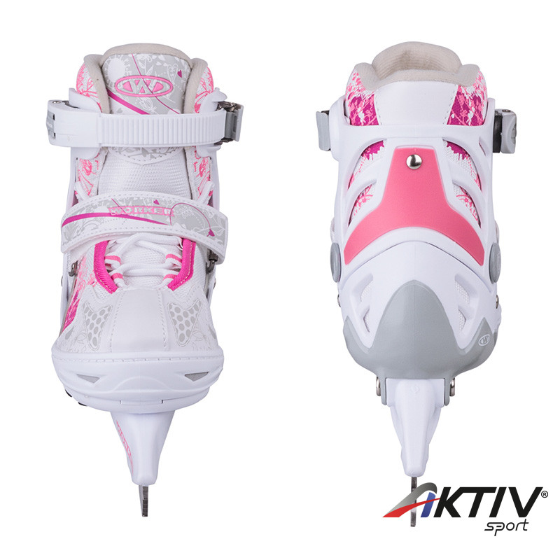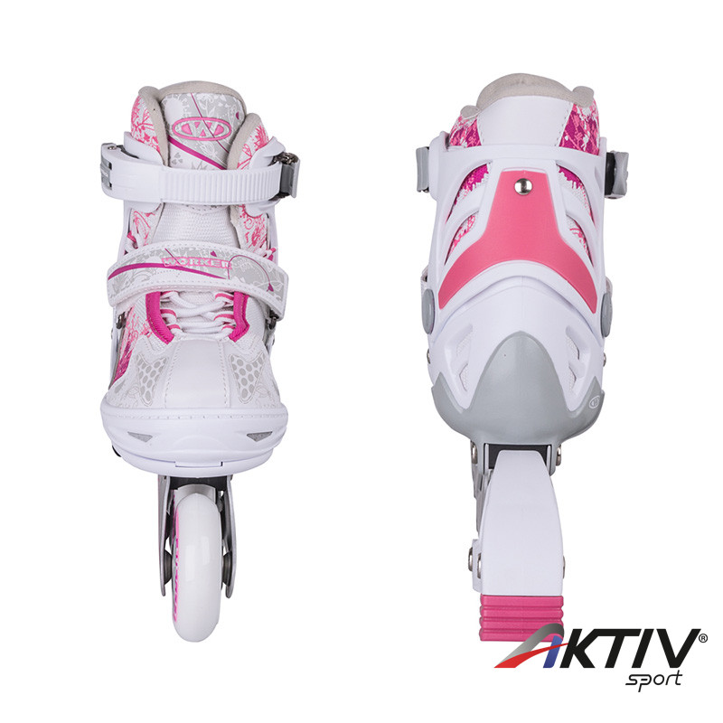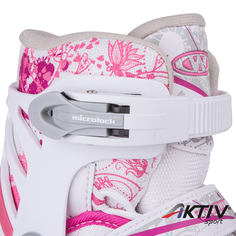 A 2v1 WORKER Pinkola korcsolyát elsősorban a lányok és nők fogják értékelni köszönhetően a színes és virágos díszítéssel ellátott külsejének. A korcsolya oldalán található gomb segítségével egyszerűen és azonnal átállítható a kívánt méretre. Ezenkívül a tartókeretek egyedülálló rendszere lehetővé teszi a téli kés egyszerű cseréjét az in-line alvázra. A felhasznált, magas minőségű gépi megmunkálással készült ABEC 5 Carbon könnyűszerkezetes csapágyak garantálják a sima menetet köszönhetően az alacsony súrlódási ellenállásnak és a megnövekedett ellenállóképességnek a nemkívánatos rezgésekkel szemben. A Safety Ankle rendszer helyes és biztonságos helyzetben tartja a bokát a korcsolyában. A kényelemet a Comfort Fit bélés biztosítja, amelyet kiegészít a biztonsági és egyszerűen beállítható MicroLock csat együtt a tépőzáras rögzítéssel és fűzéssel.