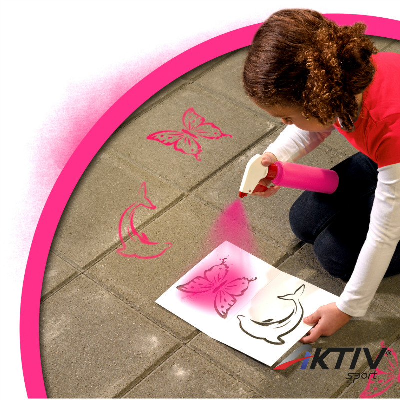 Kréta spray - pink színben. Pink színű aszfalt kréta spray, többféle sablonnal. Tökéletes permetező fejjel. Könnyen tisztítható vízzel és kefével.