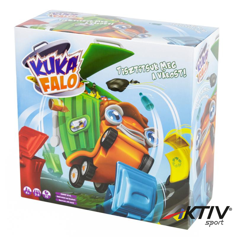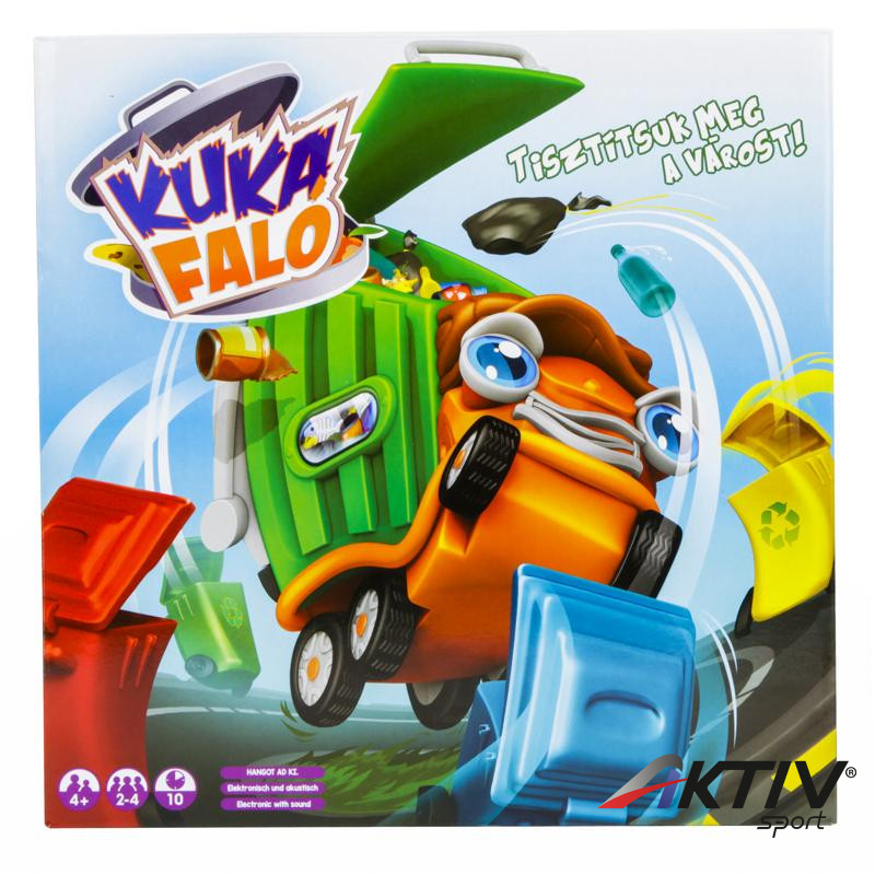 A Kukafaló társasjátékban minél több szemetet kell a kukásautó tartályába juttatni, a műanyag kukákkal. A kuka fedelével tudod kilőni a szemetet, a kukásautó körbe-körbe forog, és ha jól célzol, a tartályban fog landolni a sok szemét. A játék jó időzítést és koncentrációt igényel, minél ügyesebb vagy, annál több szemetet tudsz eltakarítani a város utcáiról! A játékban szükség van Rád is, hogy megtisztítsd a várost, ha feléd fordul a kukásautó, el ne téveszd a célzást! Legyél az első, aki telepakolja a kukásautót! A kukásautót le tudod venni a játéktábláról, és külön is tudsz vele játszani.