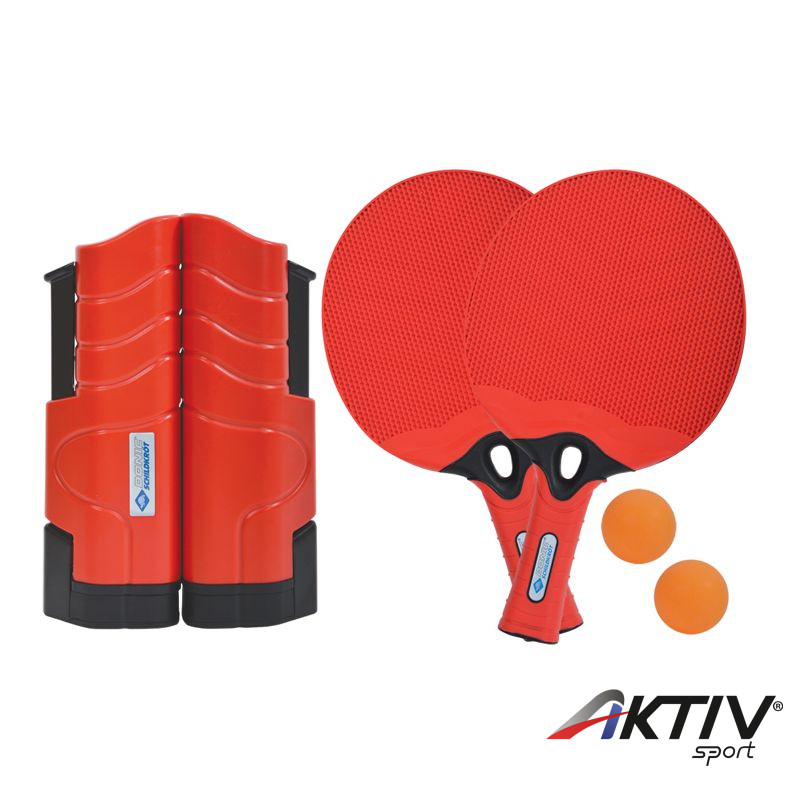 A szett tartalmaz 2 rendkívül tartós és erős műanyag ütőt, mely kemény belsővel, és csúszásmentes felülettel rendelkezik. Ergonomikus fogantyúik szintén csúszásmentesek. A műanyag ütők víz- és időjárásállók, esőben is megállják helyüket, egyszerűen moshatók, ezért sokkal higiénikusabbak. A csomagban található egy kihúzható, állítható nejlon asztalitenisz háló, mely 175 cm szélességig és 4,5 cm-es asztalvastagságig bármely asztalhoz illeszkedik! A hálóhoz tartozó műanyag oszlopok könnyen rögzíthetők rugalmas kapcsainak köszönhetően.