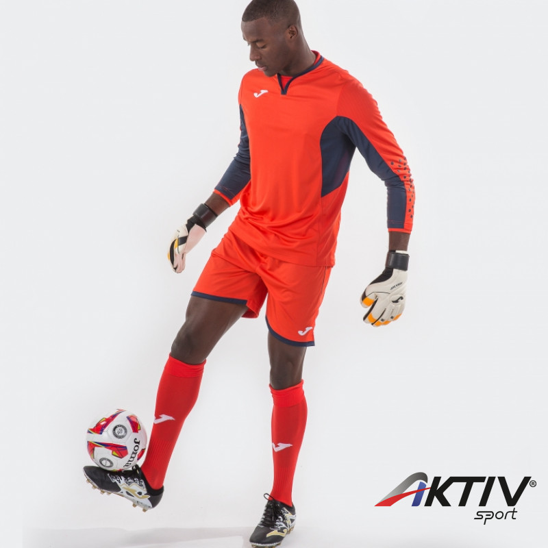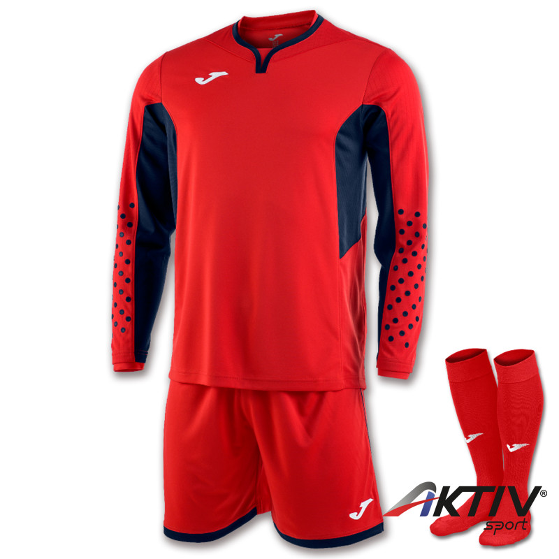 A szett 1 darab kapus felsőt, 1 db kapus rövidnadrágot és 1 pár zoknit tartalmaz.