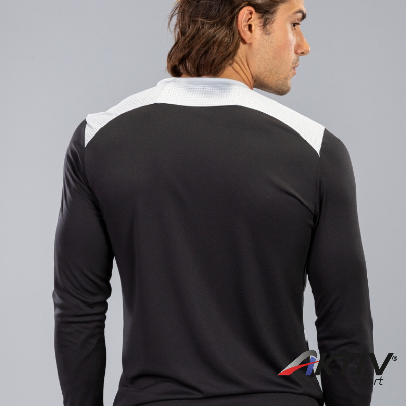 A felsőrész kerek nyakkal és kontrasztos színekkel készült. Hátulján egy hálós segíti a jó lélegzést, szellőzést.