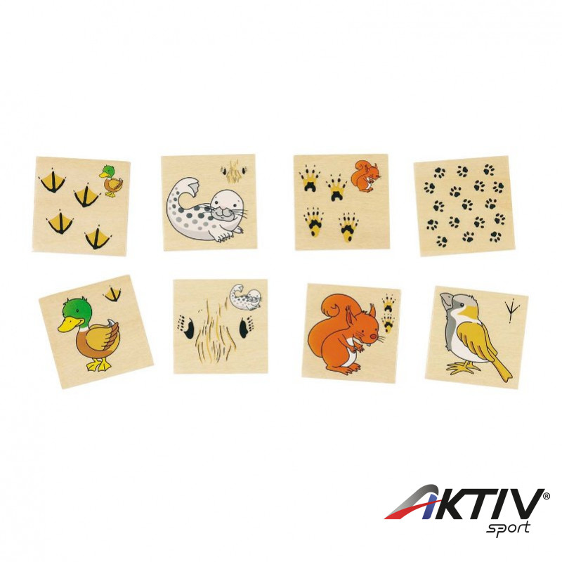A készlet 32 db (16 pár) fa, 5×5 cm-es színes képet tartalmaz. Fadobozos kiszerelés. Az állatos kártyák jobb felsõ sarkában található az adott állat lábnyoma. Minden állatos kártyának van egy párja, melyen az adott állat lábnyomai láthatók, a jobb felsõ sarokban pedig a hozzá tartozó állat. Ez a két összetartozó kártya alkot egy párt. A játékot az nyeri meg, akinek a legtöbb párja van a játék végén.