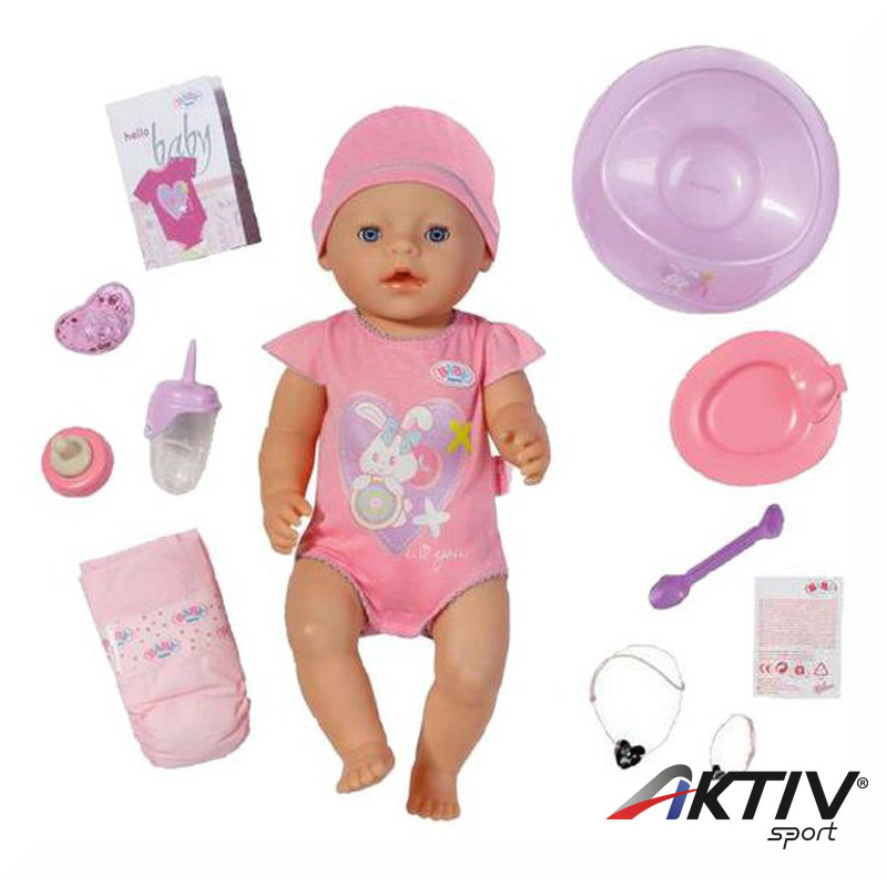 A Baby Born baba rengeteg dologra képes, úgy viselkedik, mint egy igazi csecsemő! A Baby Born 8 funkciós baba interaktív, minden mozdulatra másképpen tud reagálni. A babát meg tudod etetni és itatni, amit idővel bizony kipisil, ilyenkor pelust kell rajta cserélned. Ha lefekteted behunyja a szemeit és elalszik, a baba tud sírni, és meg is tudod fürdetni. A Baby Born nyolcfunkciós interaktív baba műanyagból készült, és nyuszi mintás rugdalózót, rózsaszín sapkát hord.