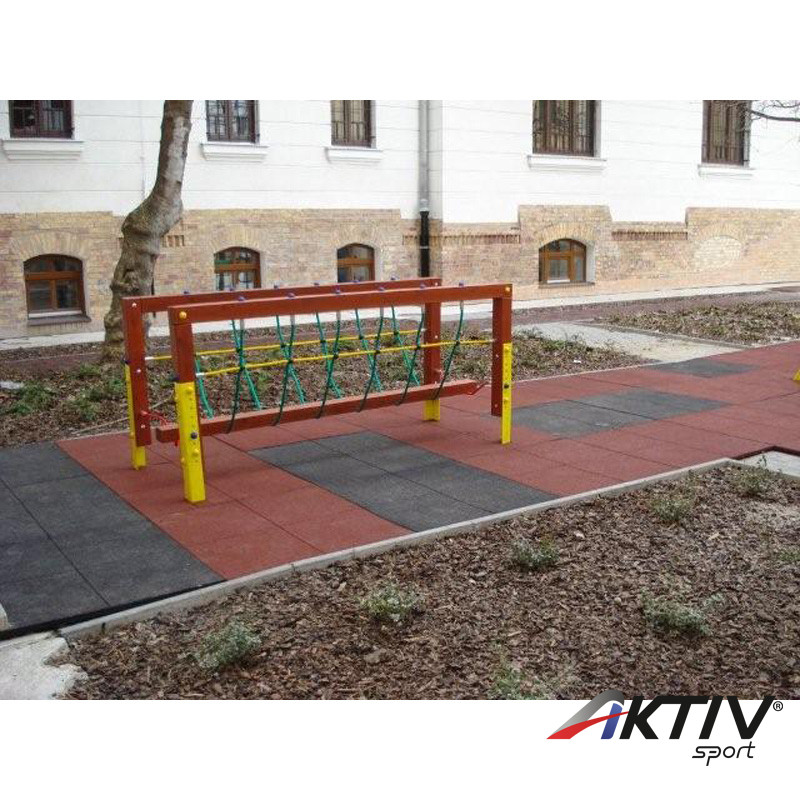 Az alacsony esésmagasság miatt ütéscsillapító felületként elegendő a gondozott gyep is.