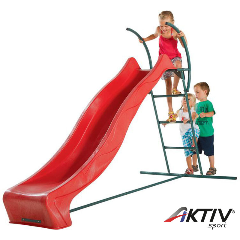 A gyerekek a fémből készült, porfestett létrán felmászhatnak és a HDPE REX 1,5 méteres induló magasságú csúszdán le csúszhatnak.