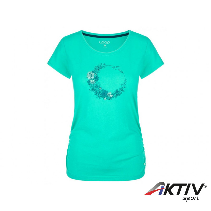 Loap BEATRIS klasszikus szabású (Regular Fit) női rövid ujjú póló, kerek nyakkivágással. Finom és kellemes tapintású anyaga 100% pamutból készült, elől virágkoszorú mintával. Ez a kényelmes, enyhén karcsúsított felső ideális mindennapi viselet tavasztól őszig.