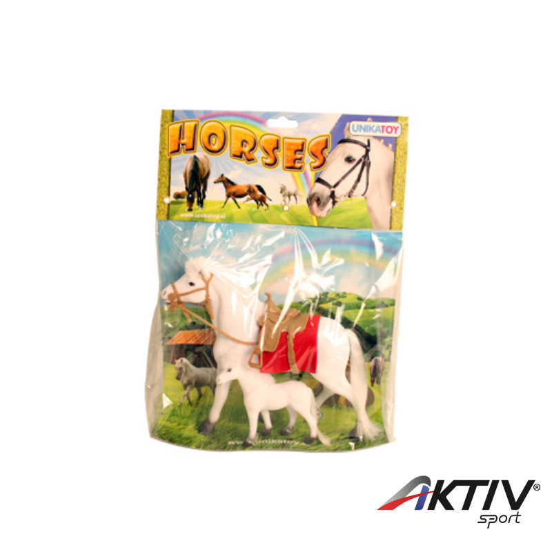 Kb. 20 cm-es / 6 cm-es flokkolt testű (soft bevonatú) ló figurák barna és fehér színben. Sokféle játéktevékenységhez felhasználhatóak. A gyerekek szívesen építenek nekik házat, utánozzák a hangjukat. Játék során fejlõdik a gyerekek szókincse, gondolkodása, környezeti ismerete.