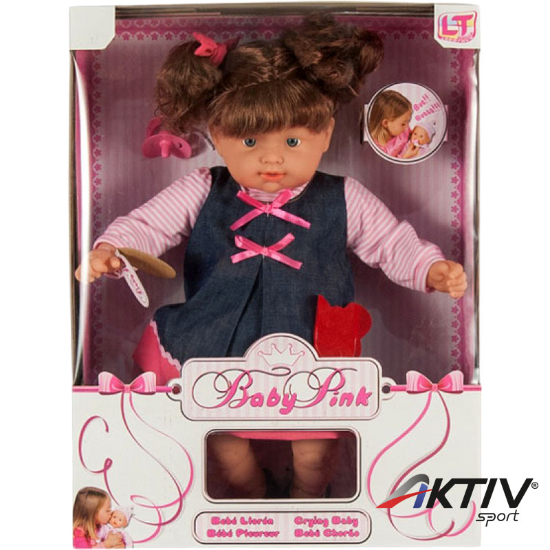 Puha testű Loko játék baba. A baba cumizó és síró hangot hallat. A baba mérete 43 cm. A játék három darab LR44-es elemmel működik, melyet a csomagolás tartalmaz. 10 hónapos kortól ajánljuk.