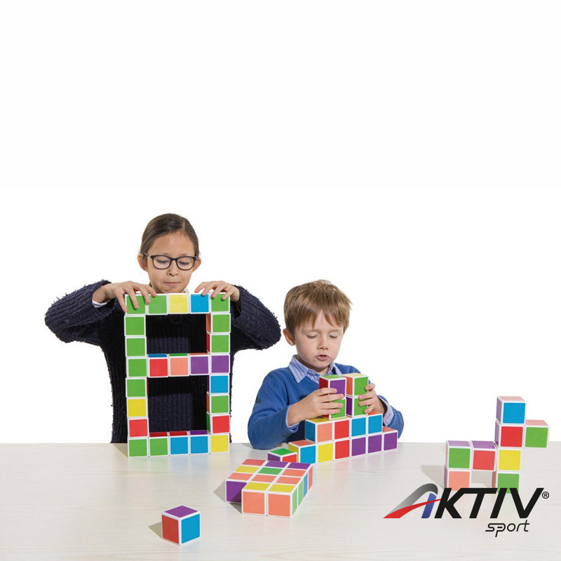 A speciális kialakítású mágneses kockák segítségével gyermekünk különböző épületeket, alakzatokat építhető! A kockák mind a 6 oldal különböző színű.