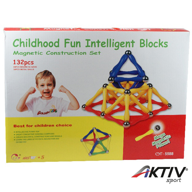 A Mágneses építőjáték 132 darabos készlet építőelemeiből bármilyen térbeli alakzatot, piramist meg tudsz építeni. A golyók nagyon erősen mágnesezettek, a rudakat szilárdan és stabilan tartják. A színes rudak piros, sárga, kék és zöld színűek, készíts belőlük házikót, labdát, felhőkarcolót vagy bármit, amit a fantáziád enged.