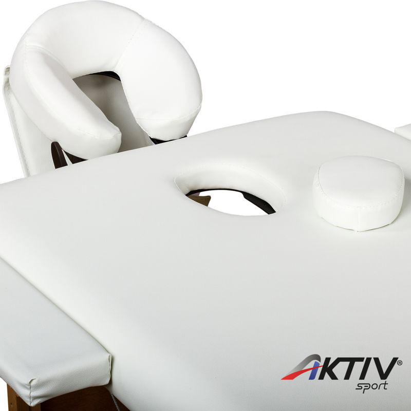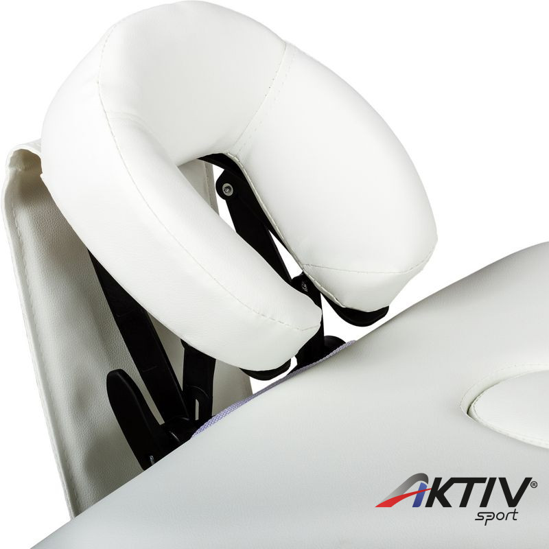 Hordozható masszázságy melynek magassága 9 fokozatban állítható, 65 és 87 cm között. A fejtámasz szintén állítható, valamint a 25 cm-es kartámaszok levehetőek.
