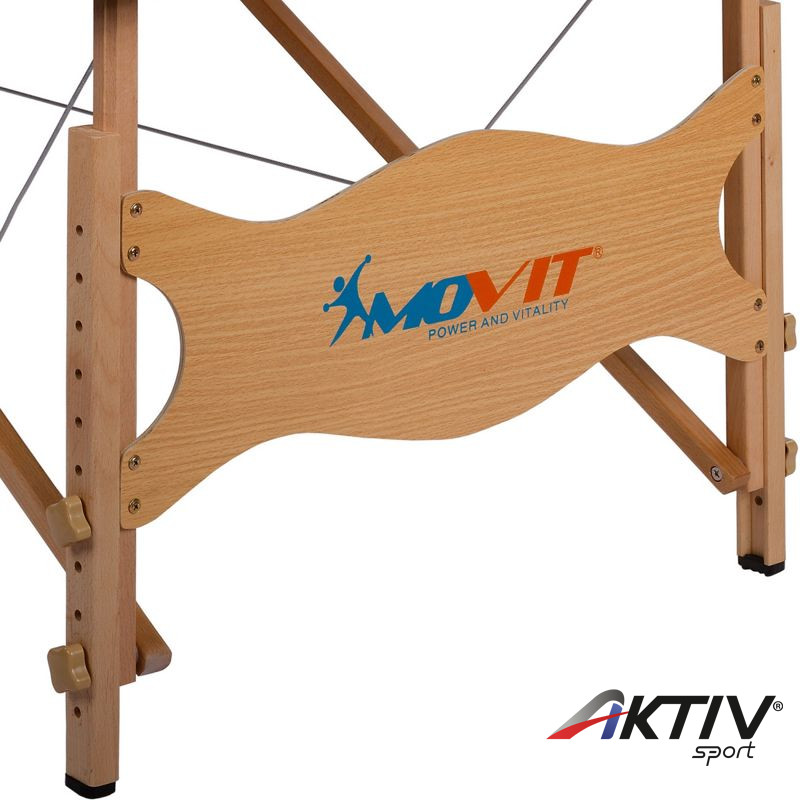 Hordozható masszázságy melynek magassága 9 fokozatban állítható, 65 és 87 cm között. A fejtámasz szintén állítható, valamint a 25 cm-es kartámaszok levehetőek.