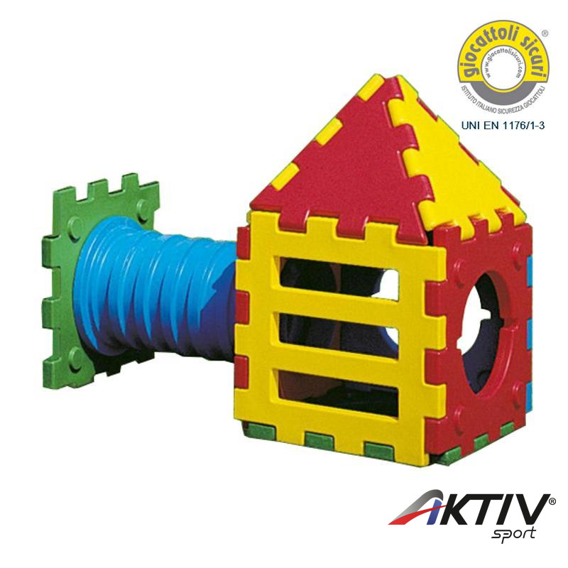 Az Italveneta Didattica alagutas, létrás házikója egy sok célra felhasználható eszköz. A házikó elemeire bontható, könnyedén szerszámok nélkül összerakható.
