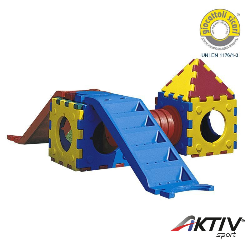 Az Italveneta Didattica csúszdás, alagutas házikója egy sok célra felhasználható eszköz. A házikó elemeire bontható, könnyedén szerszámok nélkül összerakható.