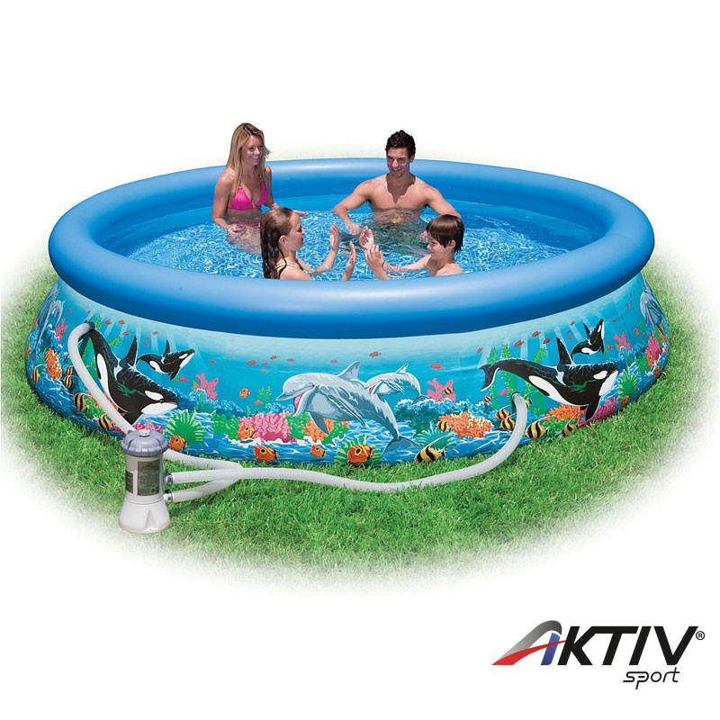 A medence gyorsan és egyszerűen telepíthető, kb. 10 perc alatt fel is fújható. Két vastag vinyl réteggel, valamint egy harmadik erős poliészter réteggel készült. Kényelmes leeresztő szeleppel felszerelt, amelyet csatlakoztatni lehet egy kerti tömlőre, így egyszerűen és könnyedén leereszthető a medence tartalma. A készlet tartalmaz egy vízforgatót is.  A medence mélysége 76 cm, ez tökéletesen megfelel akár úszásra is gyermekeknek. Szűrőrendszerrel ellátva, mely kiszűri a szennyeződéseket.