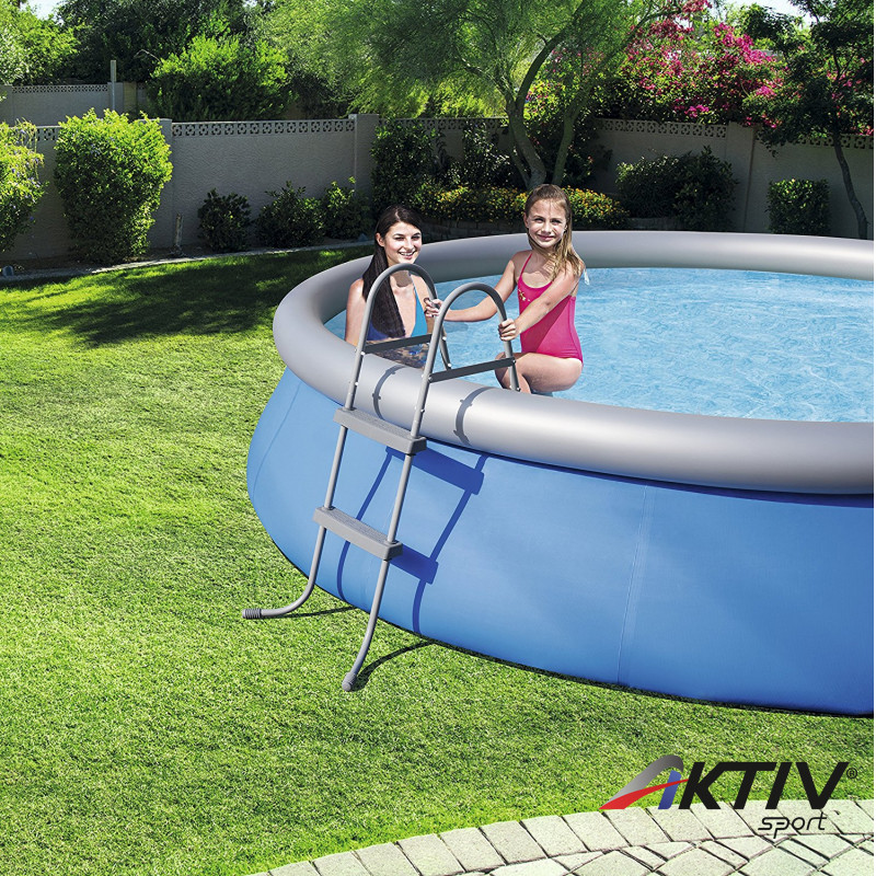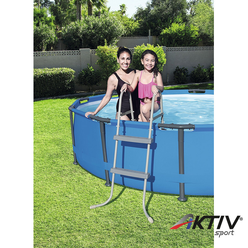 A medence létra rozsdamentes fémből készült és nagy teherbírású műanyag lépcsőfokokkal lett ellátva.